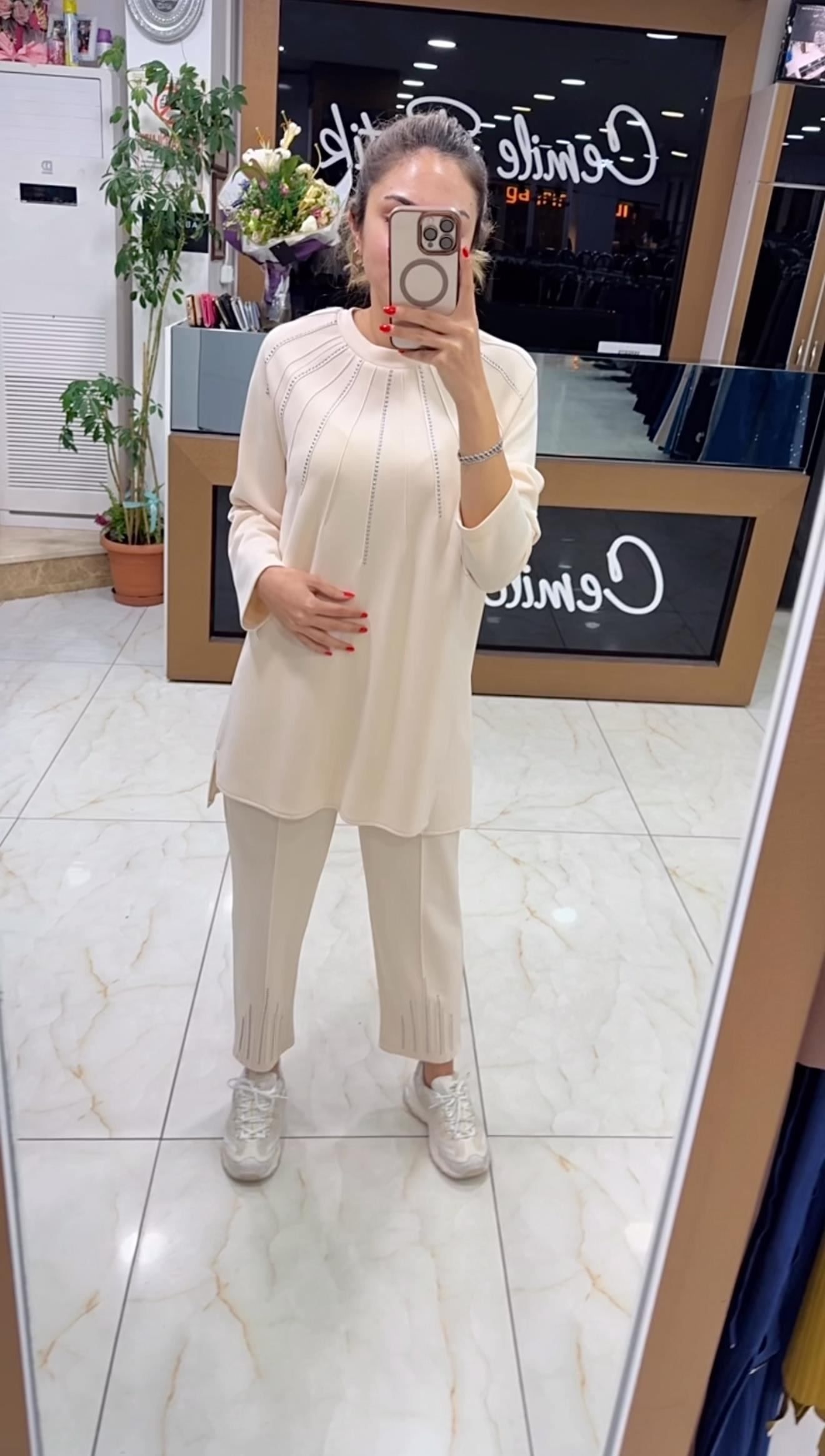 Nervürleri Metal Drop Süslemeli Takım Krem